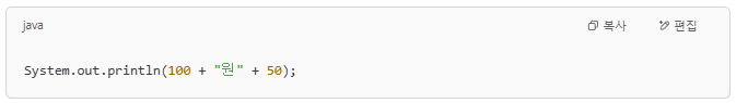 - "100원" + 50 → "100원50"