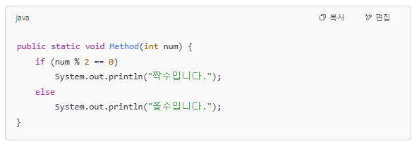 - 한 번 만든 메서드는 계속 다시 쓸 수 있어