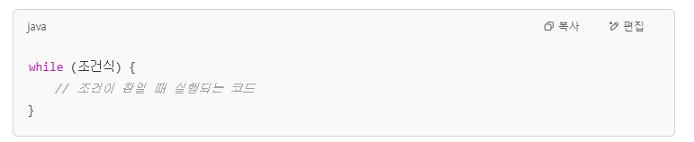 while문은 조건이 참일 동안 계속 반복하는 구조
