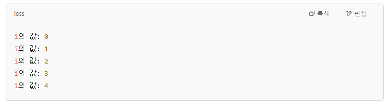 사용 예 | 숫자 계산, index 접근 필요할 때 | 리스트/배열 순회할 때 |
