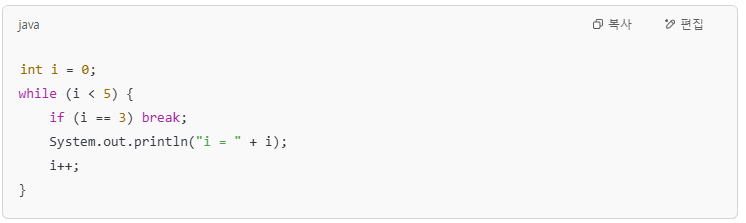 - 이번 반복만 건너뛰고, 다음 반복으로 넘어가