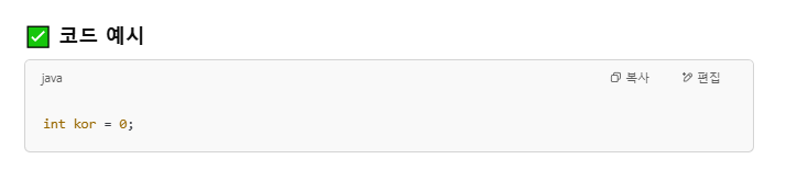 | int | 자료형(data type) | 어떤 종류의 값을 저장할지 지정 (여기선 정수) |